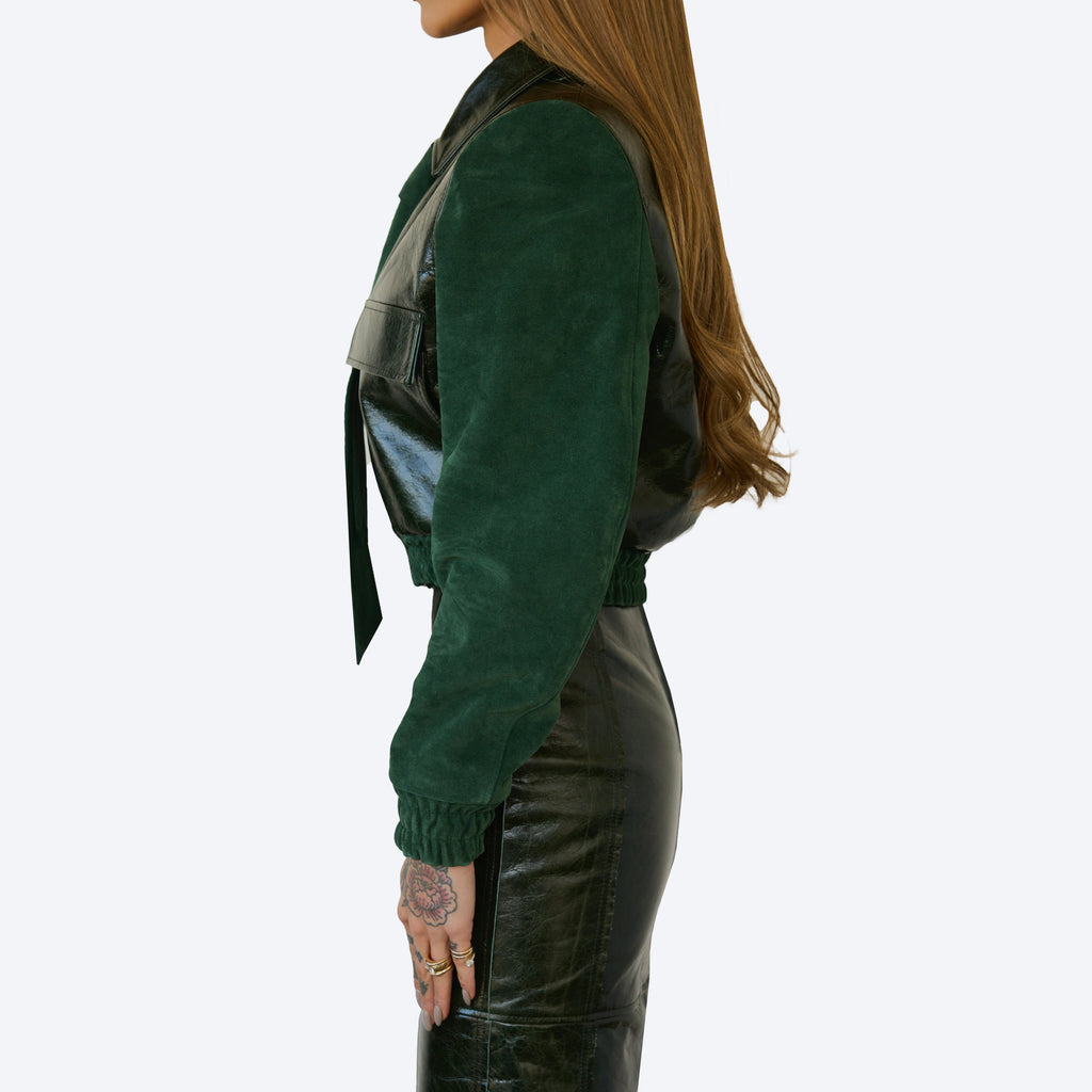 A modern take on the classic bomber — structured yet effortless, crafted in luxurious leather with refined detailing and a softly contoured fit.